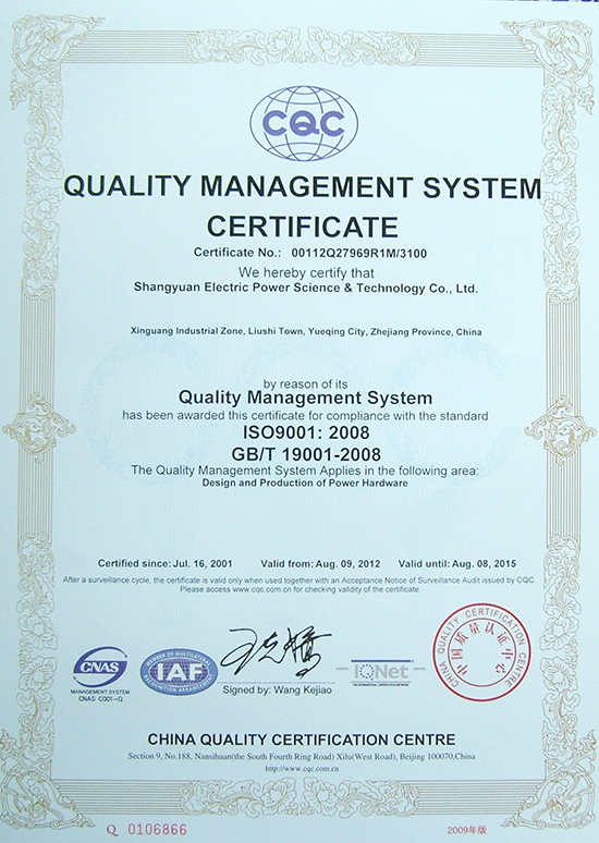 QUALITY MANAGEMENT SYSTEM CERTIFICATE |