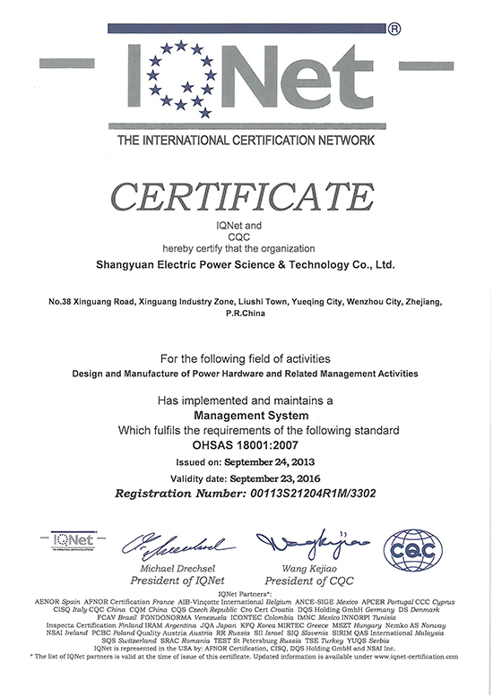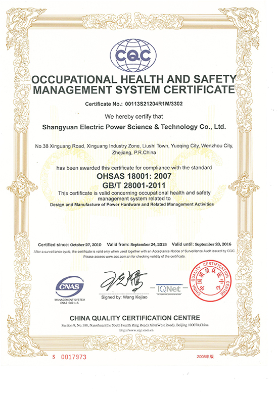 OCCUPATIONAL HEALTH AND SAFETY MANAGEMENT SYSTEM CERTIFICATE |