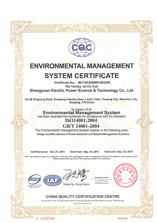 ENVIRONMENTAL MANAGEMENT SYSTEM CERTIFICATE |