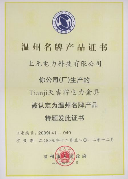 热烈祝贺公司“天吉”牌产品荣获“温州名牌产品”!