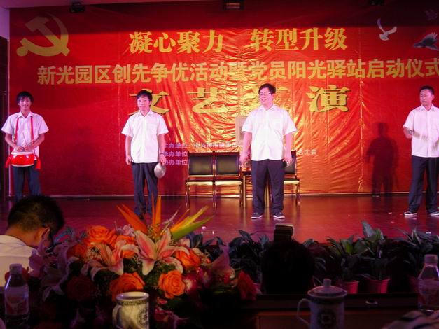 上元电力科技有限公司支部委员会、工会及团委携支部全体党员、会员及团员祝贺新光工业区党总支‘新光工业区创先争优活动暨党员阳光驿站成立’仪式及演出胜利召开!