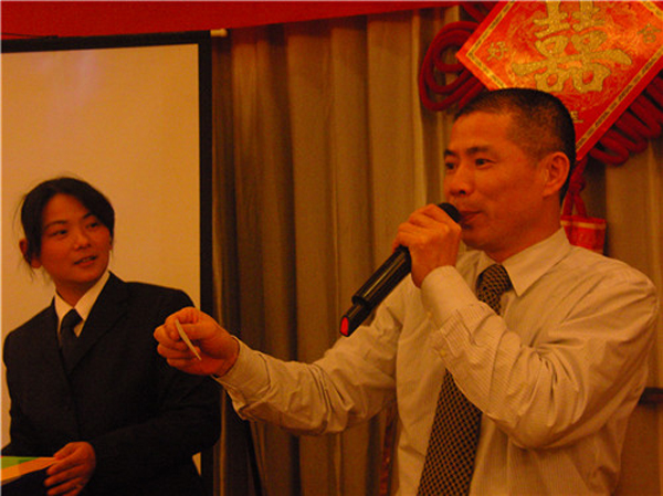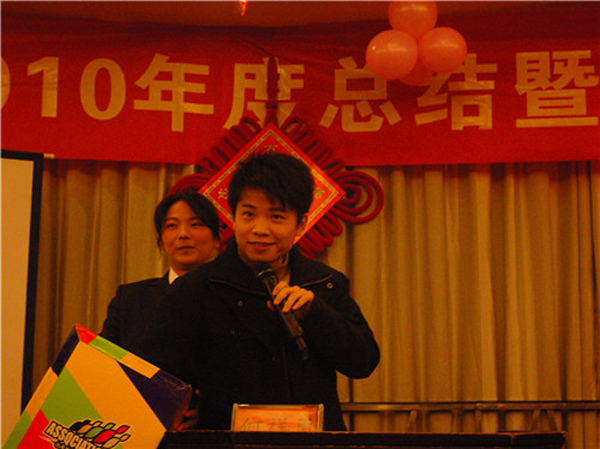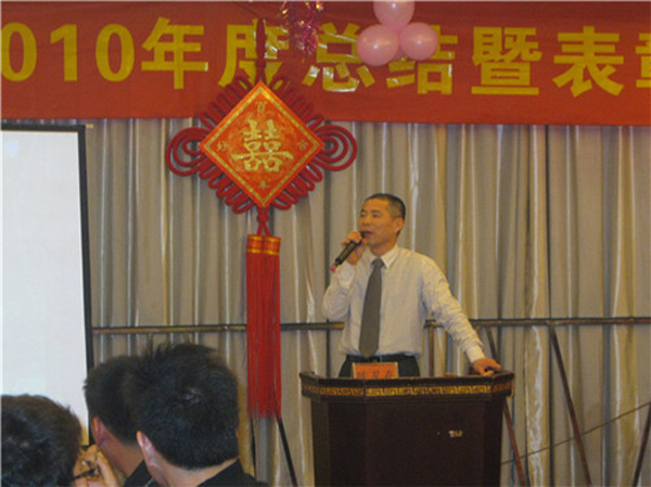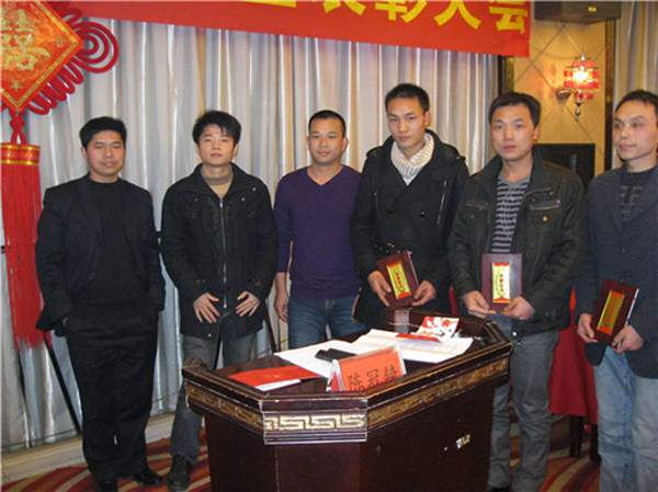董事长陈星存在大会现场 董事长宣布特等奖获得者 董事陈冠锜参加抽奖 公司行政副总李尧东主持大会| 公司领导为先进个人颁奖 先进个人代表发言 董事长与特等奖获得者 我们的歌神 我们都是一家人